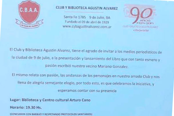 En la tarde de ayer, y en la sede de la Biblioteca “Arturo Cano” del Club, se procedió a presentar el libro del convecino Mariano González, titulado “Crónicas extraodinarias de la extraordinaria Liga Cafferatense de Fútbol”, en el que relata con pasión las andanzas de los personajes en la institución del Palomar.
