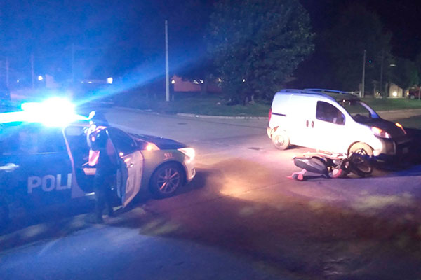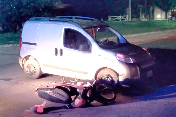 En la noche del pasado miércoles, a las 21,30 hs., se produjo un accidente en la intersección de avenida Agustín Alvarez y Freyre, protagonizado por un automóvil y una motocicleta.
