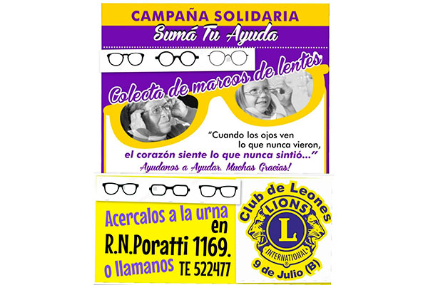 Debido a la gran demanda de anteojos y siendo los únicos en la ciudad que los otorgamos gratuitamente y al gran incremento de los costos de los mismos, iniciamos está campaña de recolección de marcos. (Hasta ahora estábamos dando marcos nuevos) Tal vez haya gente que los tiene en algún cajón sin uso y a nosotros nos sirve para brindárselo a alguien que lo necesite. Muchas gracias por su ayuda!!!