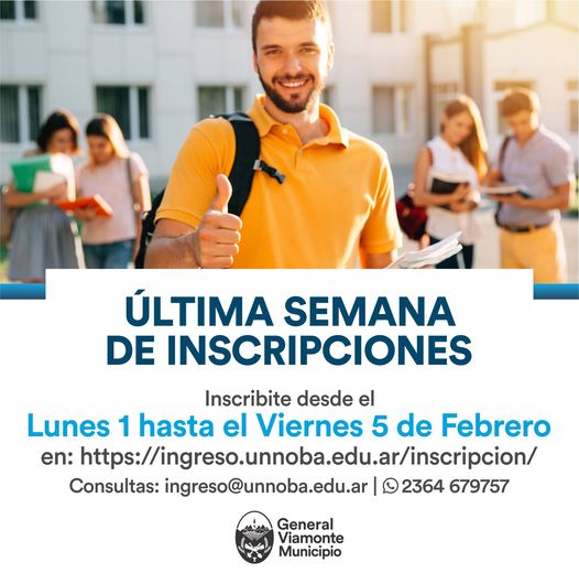 Inscribite del 1 al 5 de febrero en la web de la UNNOBA. Consultas al WhatsApp 2364 679757.