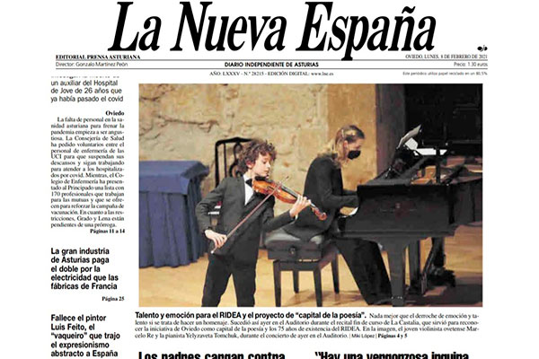 Ante tan destacada participación, el prodigio del violín, mereció la tapa del prestigioso diario La Nueva España.