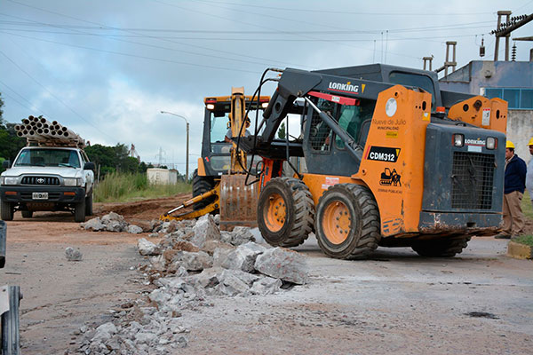Finalizados ya los ensanches de la Av. Agustín Alvarez, se trabaja en estos momentos en similar tarea en Agustín Alvarez, entre Sarmiento y Urquiza, sobre ambas manos; a la vez que se procede a remover el pavimento deteriorado para la traza de la nueva rotonda.