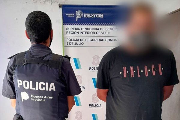 El día martes, en horas de la tarde, personal del GTO de la Estación de Policía de 9 de Julio, junto a personal de la SUB DDI 9 de Julio, procedió en calle Lugones al 800 de este medio, a dar cumplimiento a orden de detención de un masculino de 33 años con domicilio en planta urbana de este medio, dispuesta por el Juzgado de Garantías número 1 de Mercedes por el delito de Amenazas simples y Desobediencia en forma reiterada, sobre un total de 4 hechos, donde resultara víctima la ex pareja del sujeto, una femenina de 30 años.