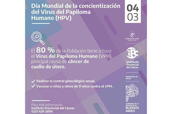 Ayer, 4 de marzo, se conmemora el Día Internacional de la Concientización del HPV (Virus del Papiloma Humano). El objetivo de esta fecha es dar a conocer el virus, las enfermedades que ocasiona y fundamentalmente las medidas de prevención.