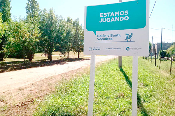 Luego de completarse meses atrás la colocación de la cartelería correspondiente a la campaña de tránsito denominada “Bajemos un cambio”, en el barrio La Esmeralda, con resultados muy positivos y cumpliendo con una solicitud efectuada por frentistas del barrio Los Zorzales, la Municipalidad de Nueve de Julio procede a colocar carteles en este sector de la ciudad; con la finalidad de solucionar y concientizar sobre la problemática de excesos de velocidad en la circulación del tránsito vehicular, con las consecuencias que esto ocasiona.
