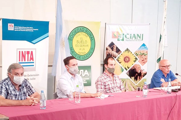 Se inició el ciclo de Charlas que organizan Sociedad Rural de  9 de Julio, INTA 9 de Julio, Regional Aapresid  9 de Julio-Carlos Casares y el Círculo de Ingenieros Agrónomos 9 de Julio, donde se abordó todo lo referido a cultivos de cobertura. Amplia respuesta de asistentes.
