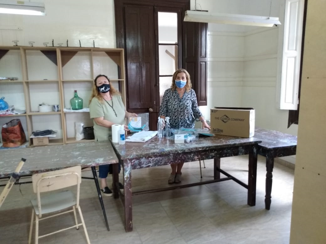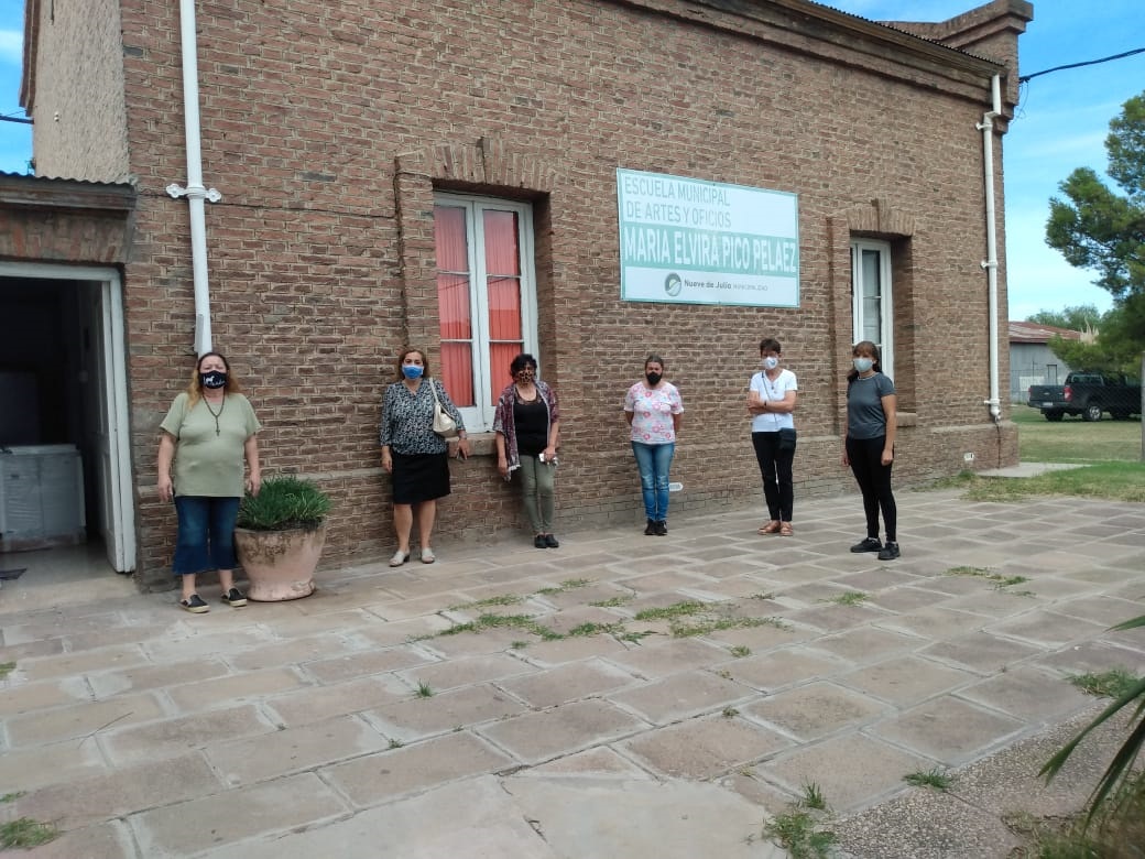 El pasado viernes, la Directora de Educación de la Municipalidad de Nueve de Julio, Prof. Marisa Poratti; acompañada por el Director de Coordinación de Delegaciones, Marcelo Delgado, visitó la Escuela de Artes y Oficios de la localidad de Dudignac, oportunidad en la que se equipó al establecimiento de todos los elementos de protección que marca el protocolo de higiene y seguridad para el dictado de talleres presenciales en establecimientos culturales.