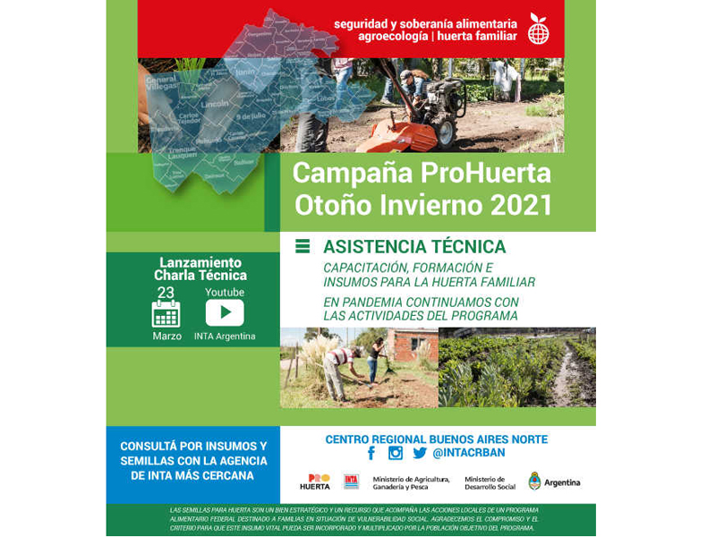 El lanzamiento oficial se realizará el martes 23 de marzo a las 14hs, a través del canal de Youtube INTA Argentina, con una charla técnica y consideraciones generales por parte del equipo de trabajo del Centro Regional Buenos Aires Norte y los agentes de ProHuerta. Además, se realizarán otros encuentros a través de esta plataforma virtual con más capacitaciones.
