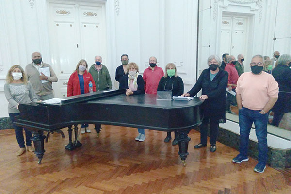 El Coro Polifónico Ciudad de Nueve de Julio retomó el pasado jueves 18, sus ensayos presenciales, en el Salón Blanco del Palacio Municipal, renovando las esperanzas de poder continuar con la actividad, cumpliendo con los protocolos vigentes, pero un tanto más cerca de la normalidad.