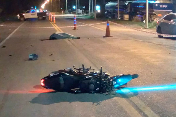 Se informa que en la víspera pasada las 23 horas, personal policial toma intervención en Ruta 5 km 263,800 sentido 9 de Julio-Bragado, donde camión Volkswagen 17220 con acoplado cargado de soja, que se desplazaba de Tres Algarrobos hacia San Miguel del Monte, conducido por masculino de 53 años, oriundo de Lincoln, es colisionado por motivos a establecer en la parte trasera del acoplado por moto Bajaj Rousser, conducida por un masculino de 21 años, con domicilio en El Provincial, quien, a raíz de la colisión, sale despedido a cinta asfáltica perdiendo la vida.