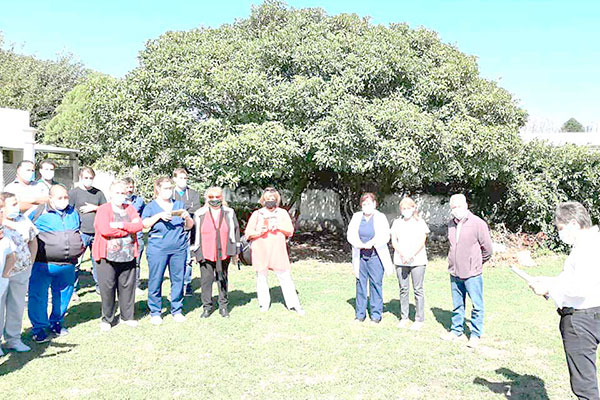 El pasado miércoles, en el patio del Hospital Julio de Vedia, se llevó adelante un pequeño acto para destacar la trayectoria de los agentes Gladys Rivero, la Dra. Silvia García y el Dr. Horacio Martínez, quienes se jubilan y tuvieron su último día laboral.