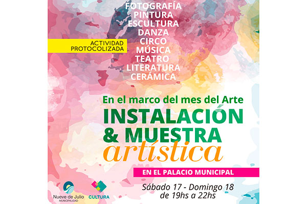Desde la Dirección de Cultura de la Municipalidad de Nueve de Julio, se llevará adelante, el sábado 17 y domingo 18 del corriente mes de abril, una instalación y muestra artística en el Palacio Municipal, la que se enmarca en la conmemoración del Mes del Arte.
