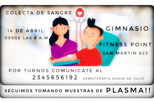 En esta oportunidad, se realizará en el Gimnasio Finess Point, Avda. San Martín 823. También se tomarán muestras de plasma.