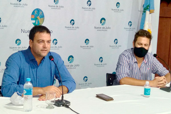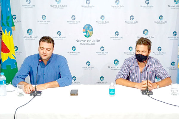 Ayer al mediodía, el Intendente Municipal de Nueve de Julio, Mariano Barroso, acompañado del secretario de Administración y Hacienda del municipio, Cdor. Martín Seijo, encabezó una rueda de prensa a fin de informar la situación del distrito ante las restricciones impuestas a nivel nacional, en primera instancia; y provincial, más recientemente, rigiendo estas últimas para el Area Metropolitana de Buenos Aires (AMBA) y algunos distritos del interior, entre los cuales, por el momento, no está incluido Nueve de Julio; donde se mantienen las disposiciones y horarios comerciales y de circulación vigentes hasta la fecha.