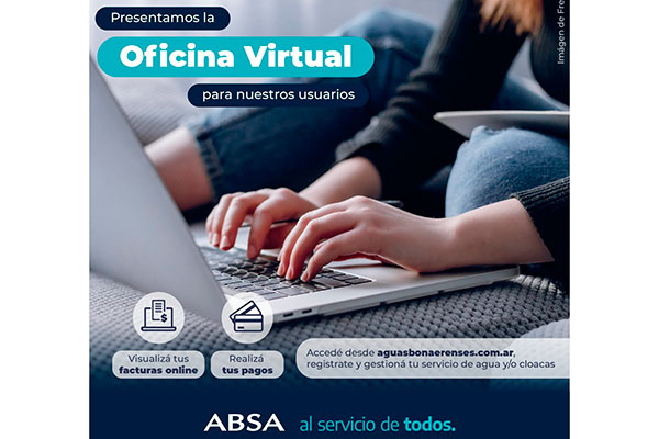 ABSA implementó su Oficina Virtual, una iniciativa de autogestión que la empresa provincial de agua y cloacas acerca a más de 800 mil usuarios de 89 localidades bonaerenses, para que puedan operar sus servicios desde cualquier dispositivo electrónico.