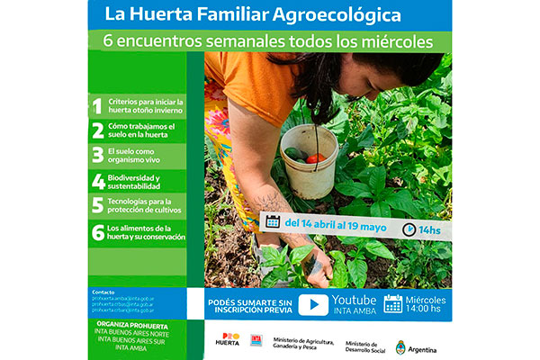 La Unidad local de INTA continúa avanzando en el desarrollo de una interesante serie de encuentros familiares sobre huerta familiar agroecológica, los que se dictan a través del INTA dºel AMBA, y que se lleva adelante durante todos los miércoles de los meses de abril y mayo, con distintos temas inherentes a este eje.
