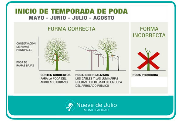 La Municipalidad de Nueve de Julio, a través de la Secretaría de Obras y Servicios Públicos, solicita a los vecinos que, ante el inicio de la campaña de poda, que se pondrá en marcha hoy, lunes 3, es indispensable cumplir con las disposiciones vigentes, para evitar multas y sanciones.
