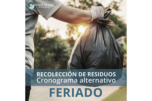 La Municipalidad de Nueve de Julio comunica que el próximo viernes 9, pese al Feriado Nacional por el Día de la Independencia, la recolección de residuos domiciliarios será normal.