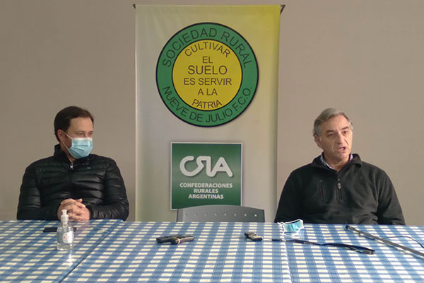 En horas de la mañana de ayer, el presidente de la Sociedad Rural de 9 de Julio, Fernando Mato y el vicepresidente de la entidad, Nicolás Capriroli, ofrecieron una rueda de prensa con motivo de la movilización que el sector agropecuario realizará mañana viernes a la ciudad de San Nicolás, en reclamo de las políticas instrumentadas por el Gobierno nacional, que perjudican notablemente al sector.