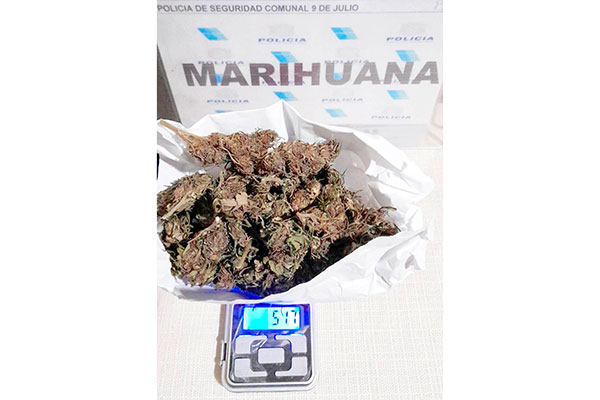 El informe consigna que a raíz de una orden de allanamiento dispuesta por el Juzgado de Garantías número 2 del Departamento Judicial de Mercedes, personal de la Estación de Policía Comunal de 9 de Julio, conjuntamente con personal del Puesto de Vigilancia de Patricios y la SUB DDI 9 de Julio se constituyó en la localidad de Patricios, donde en calles Alberti s/n entre Sarmiento y Avellaneda se procedió al secuestro de tres cuchillos y 51,7 gramos de marihuana.