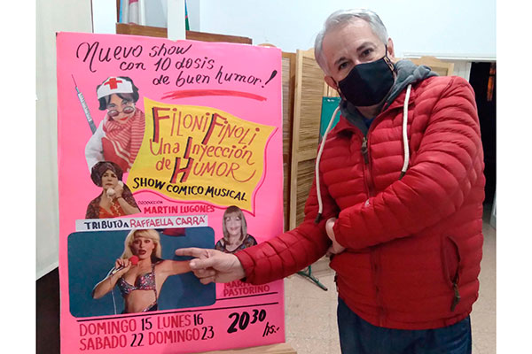 Horacio Filoni, reconocido actor y humorista nuevejuliense pondrá en escena este próximo fin de semana –domingo 15 y lunes 16, a las 20,30 hs.- en la Biblioteca José Ingenieros su nuevo show “Filoni Finoli, una Inyección de Humor”, con lo que el propio protagonista definió como “una hermosísima ambientación para volver a disfrutar de estos espectáculos plenos de música y humor, que llevamos adelante cumpliendo con los protocolos y aforos correspondientes a lo que marcan los protocolos”.
