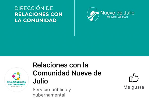 La Municipalidad de Nueve de Julio informa que ya se encuentra vigente una nueva página oficial de Facebook de la Dirección de Relaciones con la Comunidad, en la que se volcará toda la información inherente al área para conocimiento de los vecinos, la que funciona bajo el nombre “Relaciones con la Comunidad Nueve de Julio”.