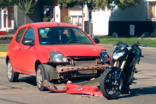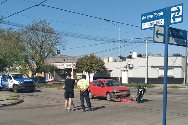 Siendo las 15 hs. del día sábado, por causas que se tratan de establecer, en la intersección de Robbio y Eva Perón, colisionaron un automóvil Ford Ka y una motocicleta Honda 250 cc, en la que circulaban dos jóvenes, un masculino y una femenina.