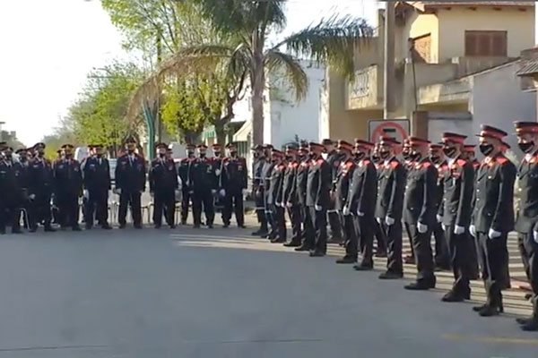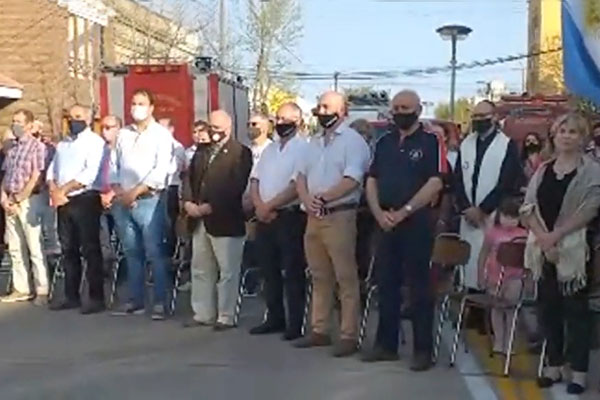 En la tarde del pasado domingo, y ante una verdadera multitud, se desarrolló el acto de celebración del 75 aniversario de la fundación de la Asociación de Bomberos Voluntarios de nuestra ciudad, frente a la sede de la institución.