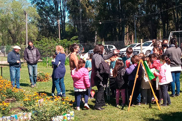 Con la presencia de padres e integrantes de la comunidad educatica, la Inspectora de Diegep de Primaria, Rita Arrriarán y Osvaldo Fons, Secretario de Vivienda y Urbanismo de la Municipalidad de 9 de Julio; alumnos de EEP N° 30 y la comunidad educativa en general, los alumnos expusieron detalles de la tarea que vienen realizando en la reutilización de yerba, con la que realizan macetas y mates.