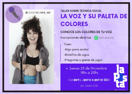 Tallercito cantor por Daira Aita en La Posta Casa Cultural. Hoy jueves 23 de diciembre de 18 a 20hs.