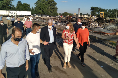 El ministro de Agricultura, Ganadería y Pesca de la Nación, Julián Domínguez, llegó en la tarde de ayer a nuestra ciudad para recorrer la planta de Lácteos Aurora, que sufriera un voraz incendio que destruyó parte de sus instalaciones hace más de un mes.