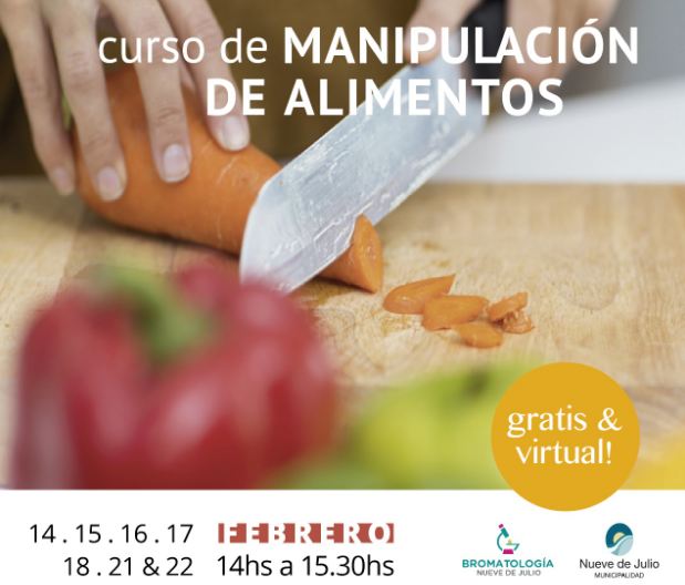 18/1/22. La Dirección de Bromatología de la Municipalidad de Nueve de Julio informa que se encuentra abierta la inscripción para el nuevo curso gratuito de manipuladores de alimentos que se dictará entre los días 14 y 22 de febrero de 14 a 15,30 hs. de manera virtual.
