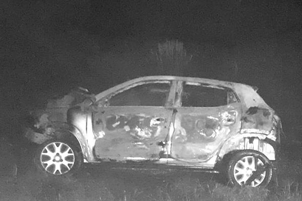 asistido por el ocupante del automóvil chocado, mientras el vehículo comenzaba a incendiarse.