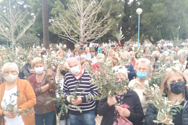 Como es tradicional a las 10 de la mañana del domingo se concentraron los fieles en la Plaza General Belgrano para la bendición de los ramos. El obispo diocesano, Ariel Torrado Mosconi, con ornamentos rojosy acompañado por los monaguillos, pronunció la bendición de los ramos.