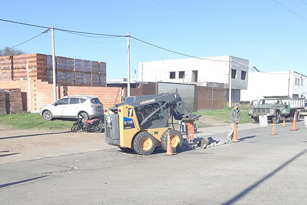 La Municipalidad de Nueve de Julio, a través de la Secretaría de Obras y Servicios Públicos, comenzó los trabajos de bacheo sobre Urquiza.