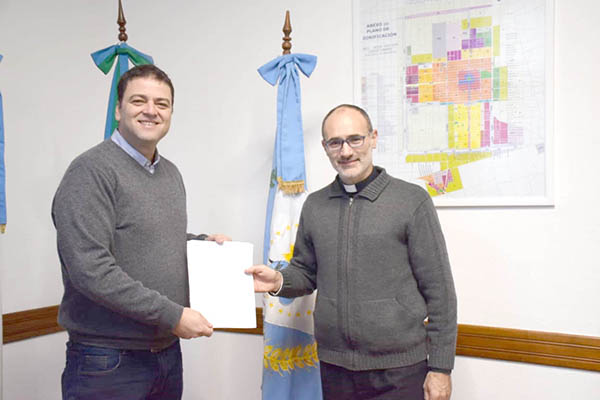 El Intendente de Nueve de Julio, Mariano Barroso, firmó hoy el boleto de compraventa de un lote adquirido a Cáritas 9 de Julio, representada por su presidente, presbítero Guillermo Jesús Gómez.