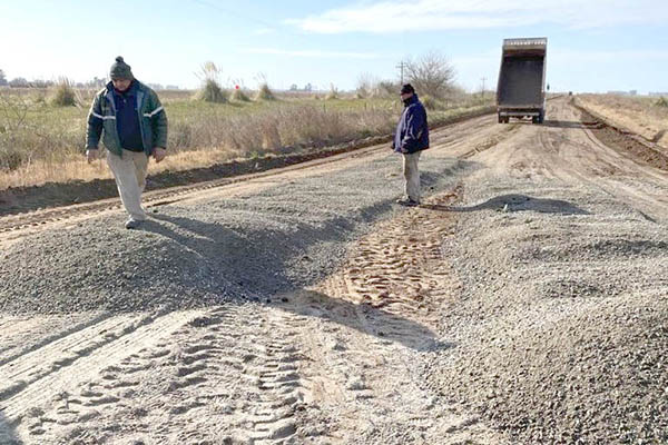 La Secretaría municipal de Obras Públicas comenzó el jueves a colocar piedra estabilizadora en el acceso a la localidad de Carlos María Naón, obra que vecinos, transportistas y productores rurales esperaban desde hacía un largo tiempo.