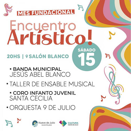 Celebrando el mes fundacional de la ciudad, desde la Dirección de Cultura de la Municipal se prepara un atractivo Encuentro Artístico, el que tendrá lugar el sábado 15 del corriente, en el Salón Blanco del Palacio Municipal, desde las 20 hs.