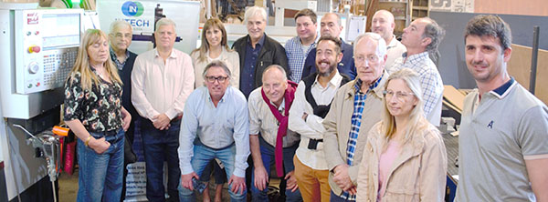 Dentro de la agenda de trabajo, la Cámara de Comercio de 9 de Julio invito a los integrantes del NENB a visitar la empresa Intech, donde su titular Alfredo Quiroga contó los desarrollos tecnológicos que entrega al mercado argentino con la fabricación de pantógrafos, robot de soldadura, y otros proyectos que ya están trabajando en 4.0