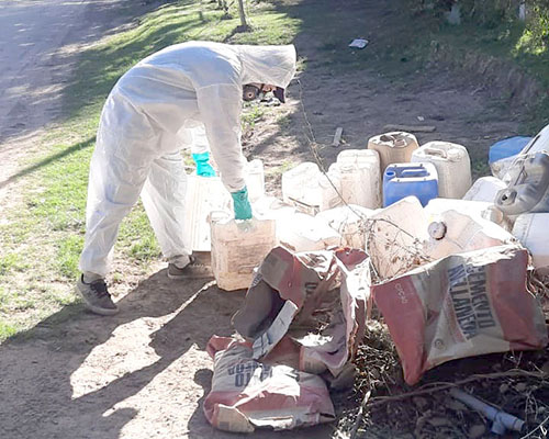 La Dirección municipal de Gestión Ambiental, retiró ayer por la mañana 20 envases de agroquímicos, que habían sido arrojados en la esquina de calle Paso al 800.
