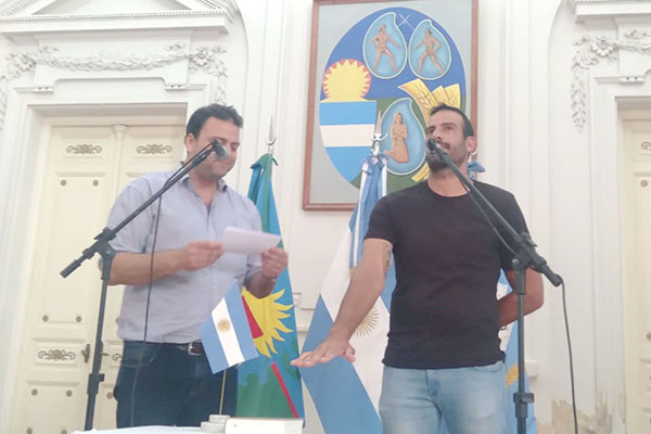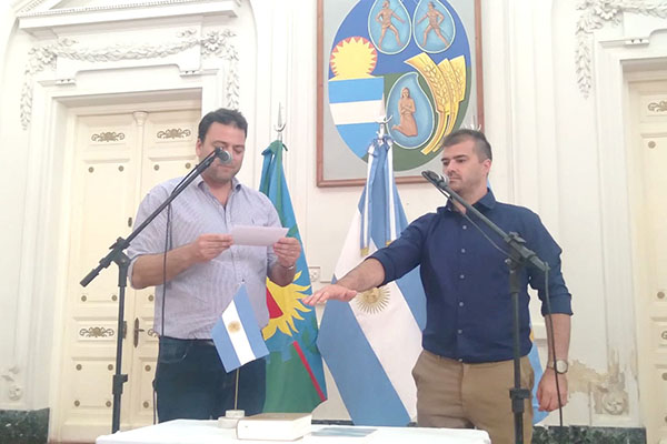 El jefe comunal, Mariano Barroso encabezó este martes el acto de toma de juramento y puesta en funciones de los dos nuevos subsecretarios. Se trata de Fernando Mendilaharzu, a cargo de la cartera de Producción y de Ignacio D´amico que dirigirá la subsecretaría de Vivienda y Urbanismo. Acompañaron al jefe comunal en el acto que se desarrolló en el Salón Blanco: la Jefa de Gabinete, María José Gentile y Horacio Baglietto, en representación del concejo deliberativo local.