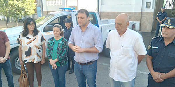 El acto de entrega se realizó frente a la Estación de Policía Comunal, y en breves conceptos, el jefe comunal señaló que al recibirse esta semana 14 nuevos patrulleros para nuestro distrito, se cumple la promesa de distribuir los mismos en las localidades del interior del distrito, recibiendo dos de ellos Dudignac, uno Facundo Quiroga, y uno la Comisaría de la Mujer.