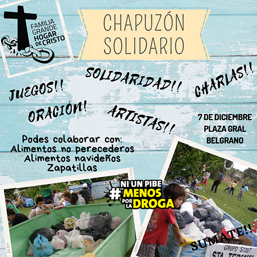 comunidad. Luego a las 10:00 de la mañana daremos inicio oficial al Chapuzón Solidario” en la Plaza Gral Belgrano donde ubicaremos tres piletas para que las personas, instituciones y empresas puedan hacer su contribución y llenar las piletas con la solidaridad de la gente. Pedimos la colaboración de alimentos no perecederos, alimentos navideños y calzado, que posteriormente van a ser llevados a comedores, asilos y familias necesitadas. Más tarde, a las 18:00 horas