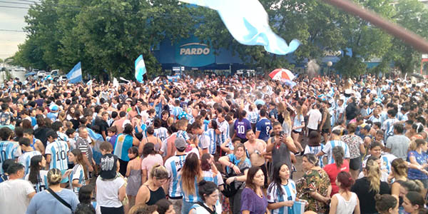 Los nuevejulienses festejan el triunfo y clasificación a semifinales de la Copa del Mundo 2022, que se juega en Qatar.
