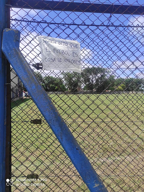 Desde la Dirección General de Políticas de Género y Diversidad Sexual de la Municipalidad de Nueve de Julio, el equipo de Comunidades sin Violencias lanzó una campaña que tiene por objeto visibilizar y avanzar en la construcción del deporte desde una perspectiva de género y diversidad, colocando banderines en las canchas de fútbol de la Liga Nuevejuliense con frases orientadas a la prevención y promoción contra las violencias por razones de género.