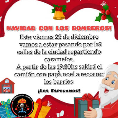De acuerdo a lo informado por la entidad en sus redes sociales, mañana viernes 23, las unidades del Cuartel recorrerán la ciudad junto a Papá Noel.
