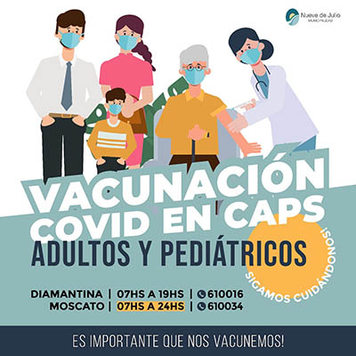 La Dirección municipal de Salud, informa que ha comenzado a aplicarse la vacunación Covid en los Centros de Atención Primaria de la Salud (CAPS) de la ciudad, tanto para adultos como para pediátricos.