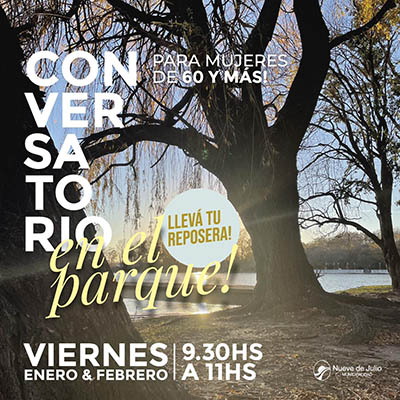 La Municipalidad de Nueve de Julio invita a un interesante conversatorio para mujeres de más de 60 años, a realizarse en el Parque General San Martín, todos los viernes de los meses de enero y febrero, de 9,30 a 11 hs.