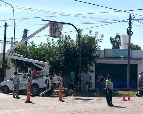 En la jornada de hoy, la Secretaría de Vivienda y Urbanismo de la Municipalidad de Nueve de Julio, colocó las columnas para los nuevos semáforos que funcionarán en la intersección de Av. Urquiza y San Juan.