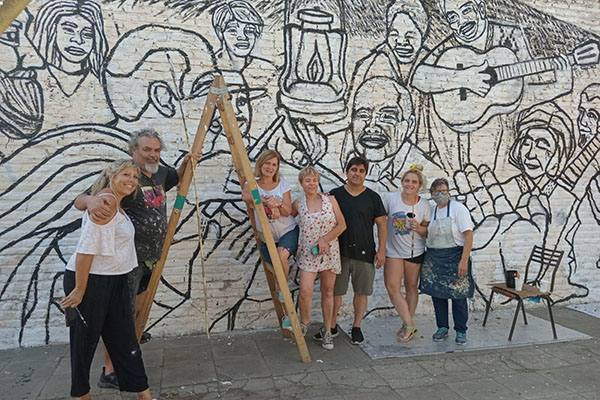 Allí están plasmando a referentes de la cultura local como “El Pampa” Domínguez; “La Calandria” y otros personajes como :Chaco Castillo; Luis Posa; los principales bailarines de tango de Las Nazarenas, Fernando y Malala; Fernando Aranda Martínez, entre otros.